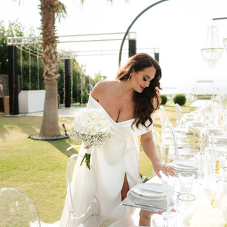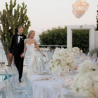 Sandra & Dajan’s wedding was all about modern elegance paired with a timeless color palette of soft whites and creams. With the Aegean Sea as their backdrop, their ceremony captured the kind of effortless romance only a seaside celebration can bring, crowned by a champagne tower.